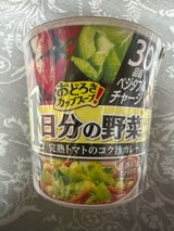 1日分の野菜が摂れるカレー風味の野菜たっぷりトマトポタージュ。カレーよりもトマトが強いので、米よりパンやサンドイッチとのセットがオススメ。