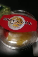 豆乳プリンの上に生クリームとベリーソース、パイナップルの果肉が乗っていました! パイナップルの甘さがどうしても豆乳プリンに比べて強いものの、個々はとっても美味しい。 トッピングしないで食べる方がそれぞれの風味を味わう事が出来ました♪