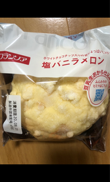 いつも同様、メロンパンに差別化をはかったネーミングですが食べてみると、普通のメロンパンです。塩メロンパンであれば岩塩などの荒粒塩の食感などがあっても良いのでは…といつも思ってしまいます。