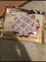100円で買いました。ホワイトチョコレートとチョコレート生地のワッフルの組み合わせが良いです。美味しいおやつですね
