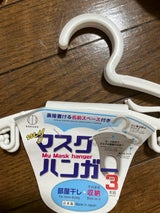 DAISOで購入。コロナ禍で帰宅したらまずお風呂に入るのでその時着けてたマスクも洗うため、お風呂の洗濯物竿に掛けたり出来るこちらのハンガーが便利かと思いました。3本組みでコスパも良きです。