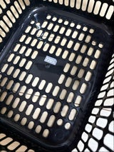 やっと見つけた。底にも穴があるタイプでサイズ感が納得出来る物。レジカゴでは、大きすぎるし小さすぎても余り物が入らないし。底に穴が無いタイプだと汚れが溜まるし。白色か黒色しか無いのが残念。
