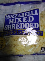 モッツァレラmixのシュレッドチーズで、この量の品物は見かけた事がなかったです。欲を言えば値段そのままで増量してくれると助かります