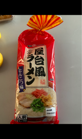 無性に豚骨ラーメンが食べたくやって購入。袋には生麺が入っていて、茹で時間はおよそ1分半ほどで出来ます。好みでネギや海苔をトッピングして美味しくいただきました!