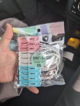 紐付きなので丈夫で服とかをどこでも吊るせるのでとても便利!1パッケージに3種の色が入ってて場によって色を選べるのがいい☀
