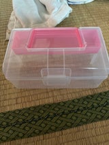 小さい多機能ボックス的な収納🧰 もう少し大きいの欲しかったけど在庫なかった。 中に小物入れついてるから細々したもの分別してしまうにはいいかも? 私はカギ編み棒しまってます。