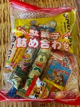 懐かしい駄菓子詰め合わせで、夫が気に入って購入。どれも美味しいと、おじさんが喜んでいます。