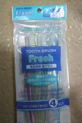 いつも使ってます。4本で百円なのですが、日本産で、普通に売ってる日本産の歯ブラシとなにが違うかというと、取っ手の部分に滑り止めが付いているかどうかだけです。滑り止めが付いてなくても、歯磨き粉がついたら洗い流すだけで滑らないので特に困りません、