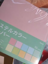 パステルカラーのペーパーはあまり好きでは 無いのよ、粉ぽい色味と言うかさ あんまりかわいくないって言うかー (パステルカラーって何か可愛い響きやん?) まっ、私が勝手に思ってるだけやけど。 今までセリアのとダイソーのは買った事あるけど 減る事が無く何年も放置したままだったが、 今回ようやく使おう、思ったら欲しい色が 過去に使ってたのでまたセリアで買った。 んー薄いパープル?か薄いグレーみたいな 色が入って無かった。(旧品のは入ってた) 今は無いのね。 いざ使ってみてーやはり折り目とか目立つなー シワが出来たら目立つみたいな。 もう少し厚みがあれば折り目も気にならないかもしれない。知らんけど。しばらくパステルカラーは買わない