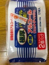 17枚という半端な数だけど、分厚い!他のは同じ100円で20枚入り×2個なので、合わせて6枚少ない、どちらを購入するか悩んだけど、17枚入りのこちらの方がずっしり重くて、食事前に手を拭くならこちらの方がしっかりと拭けると思い、こちらに決めました。