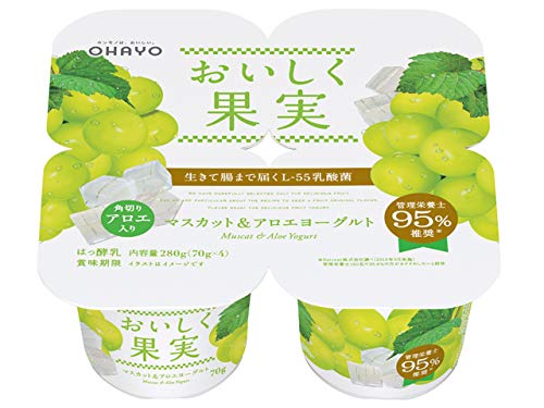 [冷蔵] オハヨー乳業 おいしく果実マスカット&アロエヨーグルト4P 70g×4
