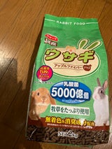 599円でディスカウントストアでかってます 最初に買ってたペレットは高くて引っ越しした先には売ってなくて困ってましたネットで買うとさらに高めでうさぎちゃん好き嫌い多めで色々試した結果これは食いつき良くしかもかじり木つき
