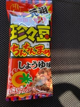 1つ100円くらい。コンビニで買える鹿児島土産。唐辛子が隠し味で醤油の豆。なんか美味しい!癖になります