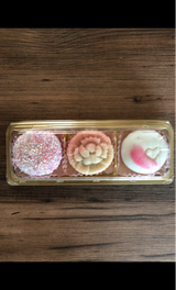 母の日ように、お茶の好きな母にお茶の葉と生菓子を購入しました。 花型とハートのかわいい色合いの生菓子でパッケージに“お母さんありがとう”とあったので買いました。 お値段の割にパッケージが安っぽいのが、残念です。