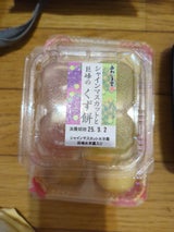 小粒の水まんじゅうが1パックに4個入っています。桃とシャインマスカット味です。美味しいです。