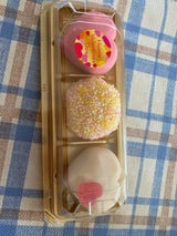 一目見て可愛いと思ったので購入しました。チョコレートよりも和菓子派の方へバレンタイン一緒に食べるなら良いと思います。真ん中のもハートでよかったと思います。白黄色ピンクのみじん粉がまぶしてあって春らしいですけど、いまいちここだけバレンタイン感が無くて不自然に感じました。