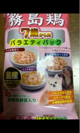 3個共 違った味のパックになっていてシニア犬用にちゃんと計算して作ってくれているので嬉しい商品です。