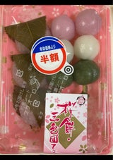 いつも割引のときに買います♪ 3色串団子が2本と、桜餅が3個入っていて、どっちも食べれて満足満足(^^)