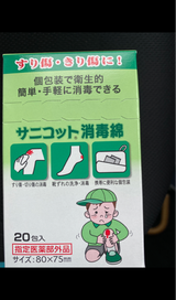 消毒液がなかなか出回らない昨今、消毒綿がでまわってきたからよかった。