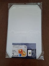 ゴムが四方の角についていて、滑りにくいです。両面使えるので、野菜と肉に分けて使います。白、写真では分からないほど薄いグレーの色がついているので、使い分けは可能だと思います。