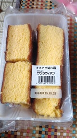 賞味期限が切れる前くらいに食べたからかすごくしっとりしていて、前に食べた時より美味しく感じました。 サンラヴィアンの普通のパッケージに入ったカステラはよく見るのですが、この切れ端はあまり見ないので、次はいつ会えるか楽しみです。