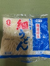 この細うどんは、家族でよく食べに行った閉店した人気のうどん屋さんのうどんなのか(仕入先)、似ていて大好きです。 あごだしうどんの粉末スープと一緒に食べると最高。