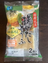 レンチンすると揚げ豆腐がふわっとして、中の滑らかな絹豆腐の食感も良かったです。大根おろしは粗めですが辛くなくてあっていたと思います。