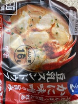 蟹味噌の味は弱いと思いましたが、ピリ辛で美味しかったです。 豆乳スープにショートパスタやライスを入れてみましたが良かった☺︎☺︎☺︎