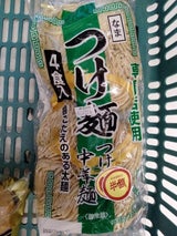 200円以下で買えるラーメンの麺。つけ麺に使うものだが、つけ麺以外で食べても美味しい。つるつるしているが、時間が経つと乾いてしまう。水にさらせば元に戻る。
