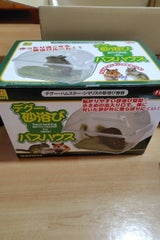 ジリスちゃん用に買いました。砂が飛び散らない作りになっていて、とても助かるのですがうちの子はお尻のお肉が引っかかってしまい、出入りが大変そうなので蓋を開けて使っています。