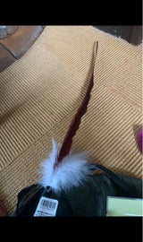 左右に動かすと猫たちは興味を示しますが、羽の先は捕まえられません。猫に引っ張られて壊されないから長持ちしそうです。