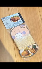 ぶたさんが縛られている絵が可愛い。料理にかかせない巻き糸。もう少しお値段が安いのがあると家計に嬉しい🥲