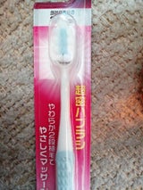 柔らかい密集毛で毛先が開きにくく、縦磨きや奥歯の噛み合わせ面は効率良く磨けるが、ヘッドが大き過ぎて細かい部分が磨きにくい。39円だったのでまあそんなものかな。