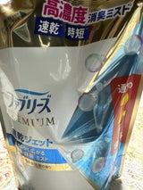 普通のファブリーズより価格がややお高めで、違いがよく分かりませんがいい匂いだし、シュッシュしなくてもシューーーっとひと吹きで広範囲が賄え、ベチャベチャになり難いので好きです。