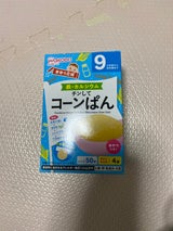 プレーンの蒸しパンを買って食べさせたところ、食いつきが良かったので、コーンも買ってみました。美味しいといいな〜。