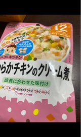 同じ和光堂さんのホワイトソースを利用して作るクリーム煮は食べませんが、こちらは美味しそうに食べました。