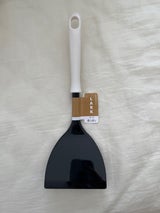 ナイロン製の大きめの穴あきターナー使ってますが、重い卵焼きなどを返す時ペラペラして安定しないので厚めの物を探してました。百均で安く買えて満足です。しっかりしていて返しやすいです。