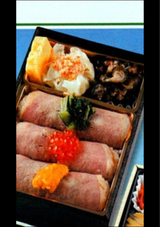 しっとりとしたローストビーフにくるまれたお寿司です。名前の割には上に乗ってるウニといくら、野沢菜が少なく名前負けしてるきがしますが、味は抜群でした。