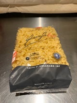 珍しい形のパスタで、これを使ってカルボナーラを作りました。ソースがよく絡み旨味も引き立ちました。