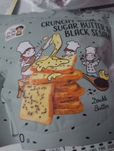 バターと黒ごまがベストマッチ! とても美味しいです。 ザクザクとした食感と薄さが好きです。 ただ、量が少なくてあっという間に無くなります。